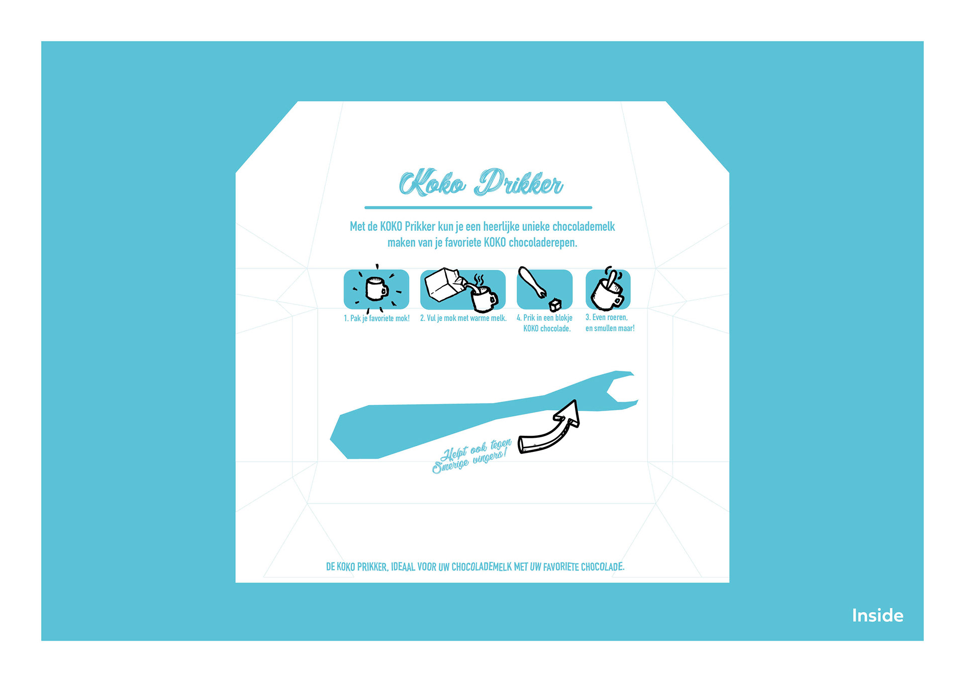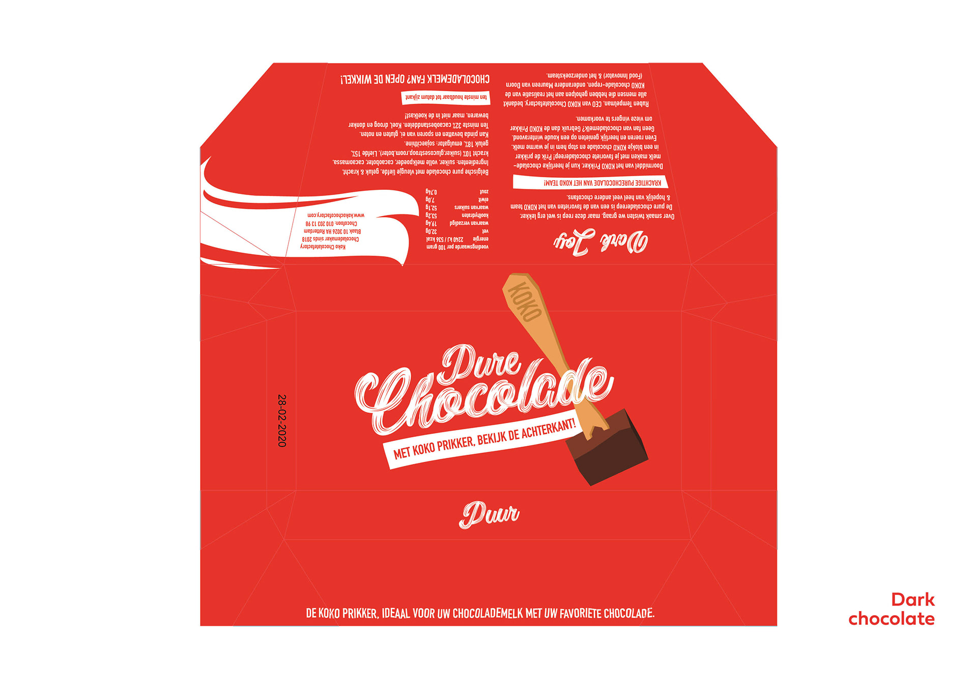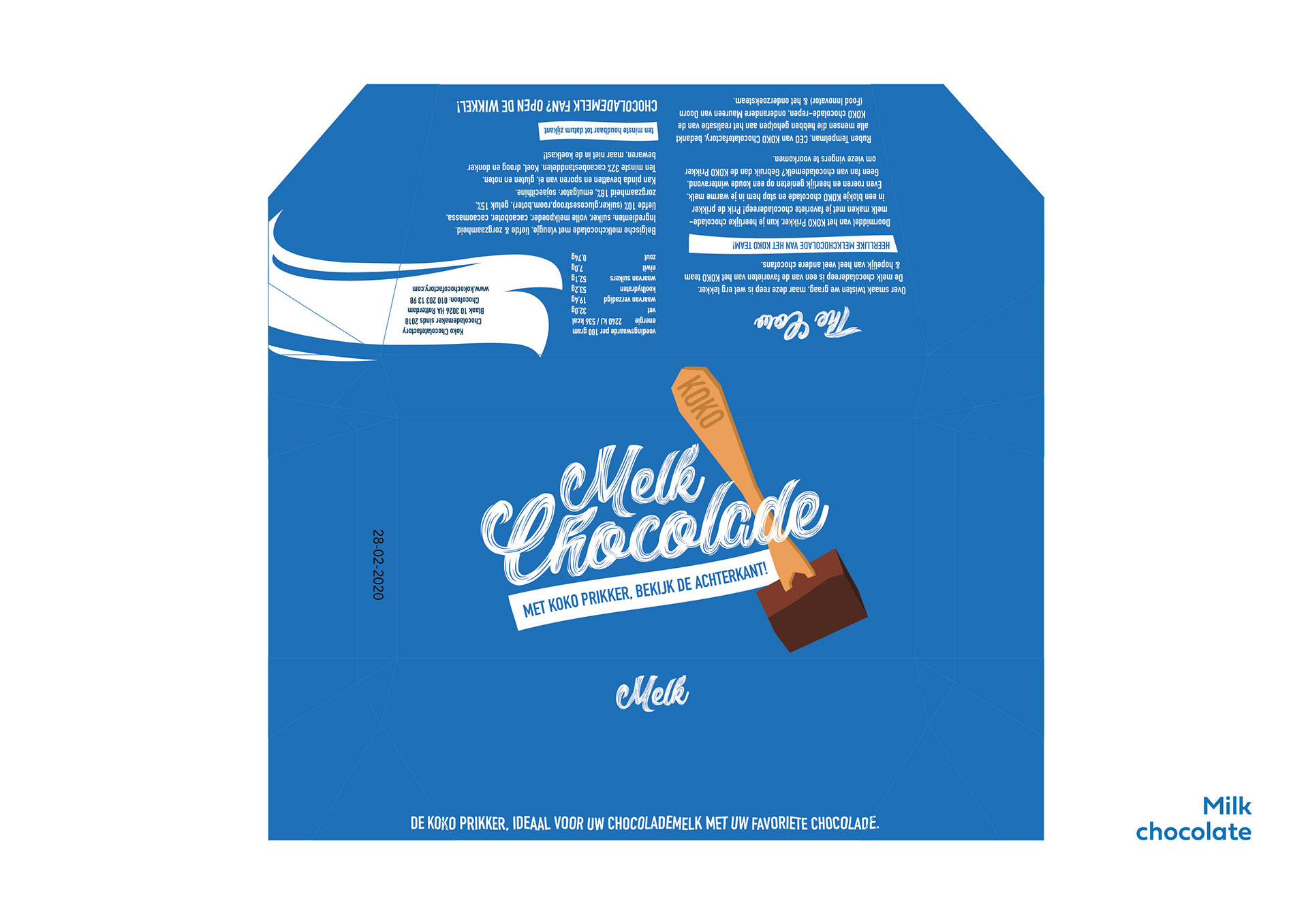 Fresh design for Koko chocolate bars. There is a handy tool inside, so you can make delicious chocolate milk with your favorite piece of chocolate.